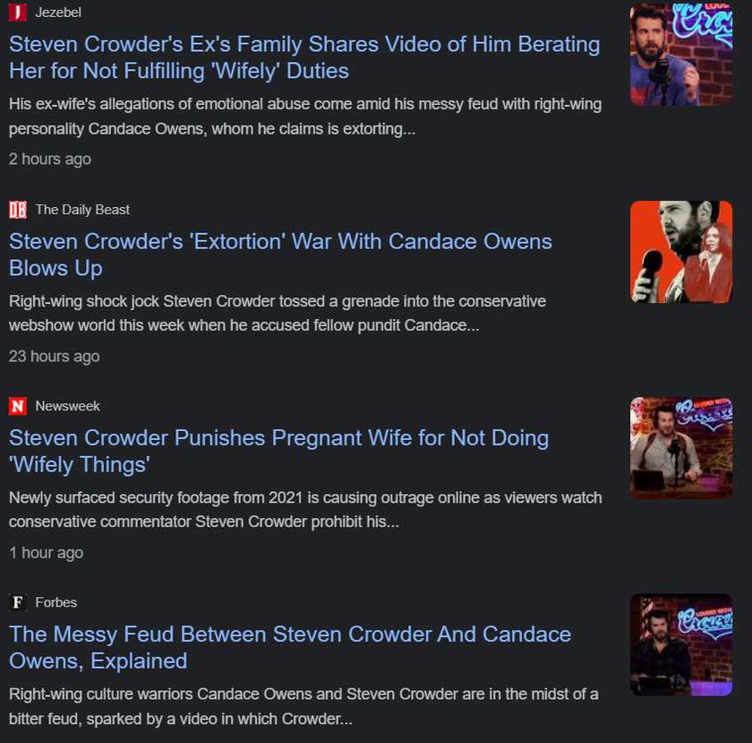 Next up is the reft between Crowder and Candance Owens after Crowder accused her of trying to extort him with details of his divorce.