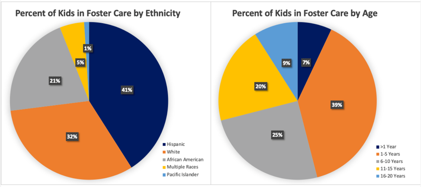In 2020, three out of every 1,000 kids in the United States were living in foster care. Of those approximately 214,000 children in foster care, 7% live in Texas.